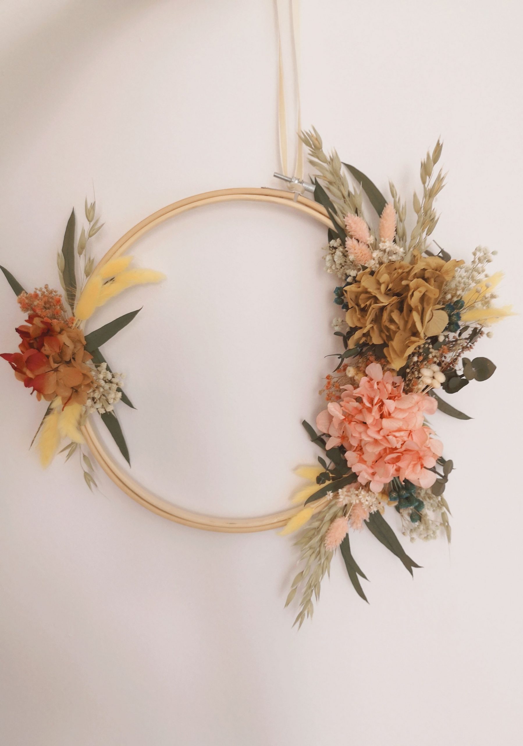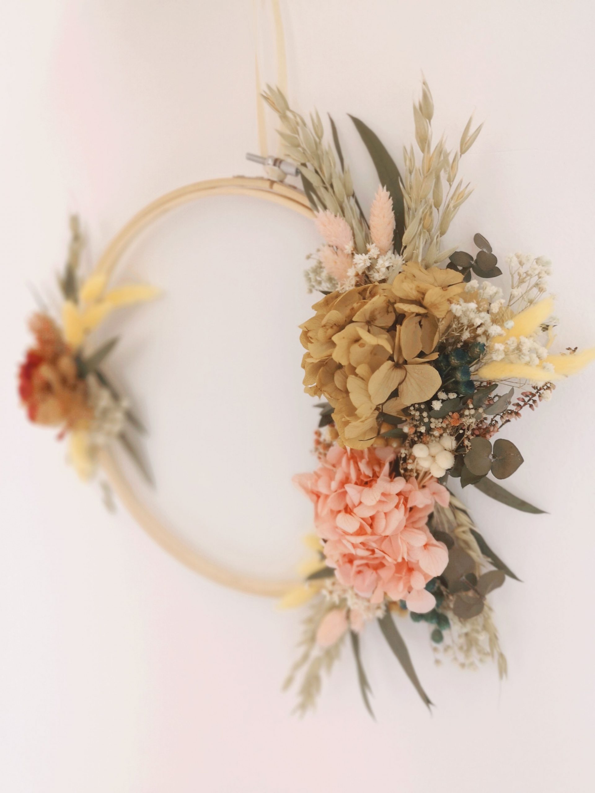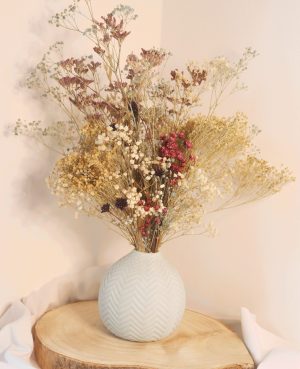 Composición hecha con flores preservadas en varios tonos y tipos de flores. Se realiza artesanalmente con una variada gama única de flores para cada diseño.
