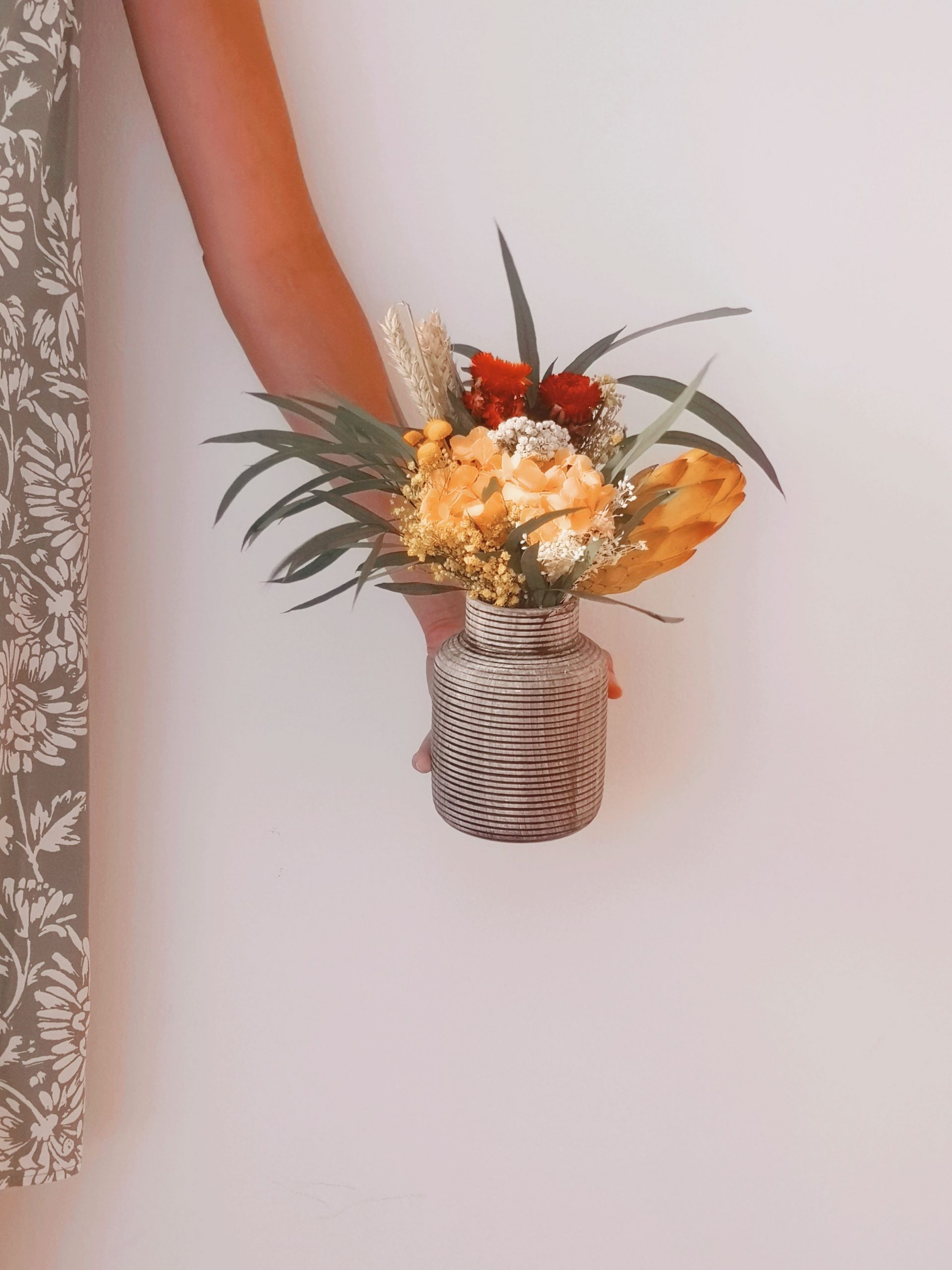 Precioso y original diseño con flores preservadas en jarra de cerámica. Ghana es un país de África precioso, es famoso por su gran variedad de fauna. Pero realmente le he puesto este nombre porque solo con verlo me recordaba a Ghana, a su cultura natural, nada materialista y dedicada al campo.